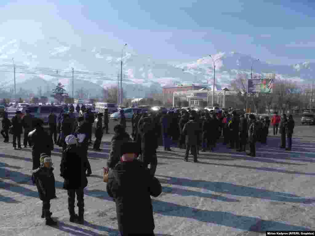 Нарын облустук администрациянын алдына 100дөн ашуун киши митингге чыкты. Алар электр баасын түшүрүүнү талап кылууда.