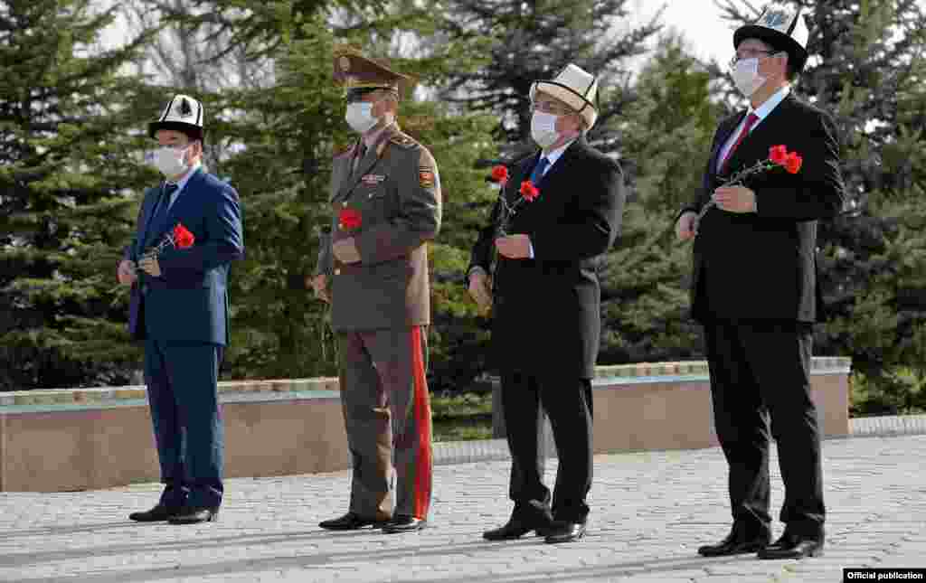 Президент Садыр Жапаров баштаган топ апрель окуяларынын курмандыктарын эскерүү үчүн "Ата-Бейитке" барды.