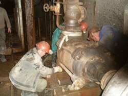 Айдеркен сымап комбинаты. Жер астында суу сорчу насосторду оңдоп жаткан жумушчулар. 27-июль 2007-жыл