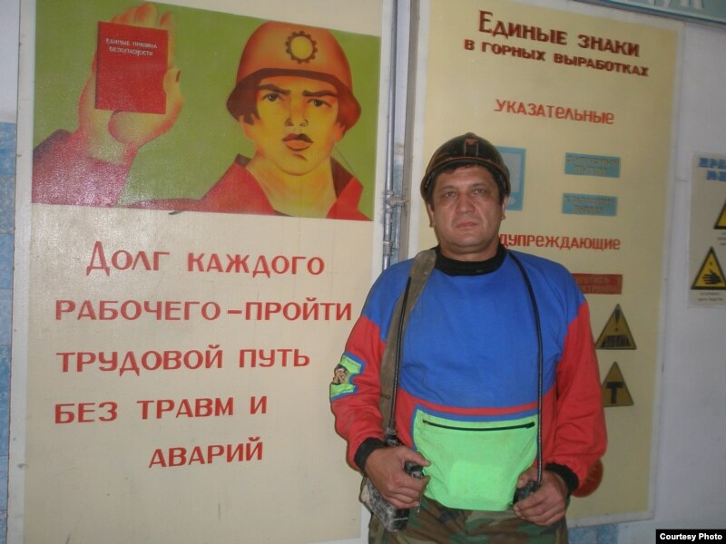 Айдеркен сымап комбинаты. Магниторгорск шаарындагы Носов атындагы мамлекеттик техникалык университетинен келген студент Иршат Боркошев 200 метр тереңдеги забойдо. 27-июль 2011-жыл.