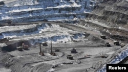 Кумтөр компаниясынын башчысы Майкл Фишер менен Кыргызстандын экономика министри, Кумтөрдөгү абалды иликтөөчү мамлекеттик комиссиянын төрагасы Темир Сариев. 9-октябрь, 2012-жыл.
