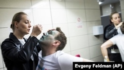 Навальныйга кол салуулар да болуп турган. Бул сүрөт 2017-жылы Москвада анын бетине жашыл дары (“зеленка”) чачылгандан кийин тартылган.