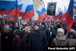 Оппозициялык саясатчы Борис Немцов сыяктуу эле, Алексей Навальный да февраль айында каза болду. Немцов 2015-жылы Кремлдин жанында атып өлтүрүлгөн. Навальныйдын тарапкерлери 2020-жылы ал “Новичок” менен ууланып, абакта кыйноого кабылбаса, тирүү калмак деп ишенишет. Сүрөттө: Алексей Навальный Немцовду эскерүү маршында. 2018-жыл, 25-февраль.